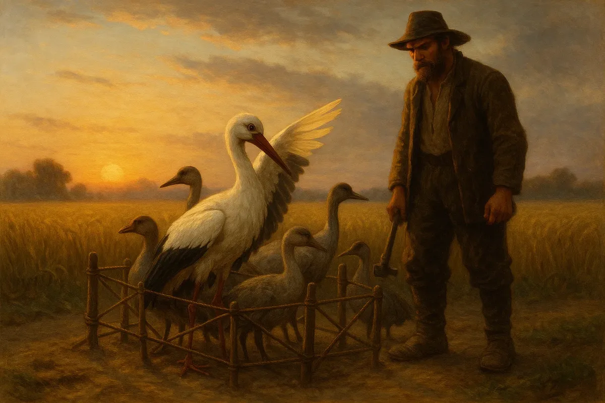 El labrador y la cigüeña